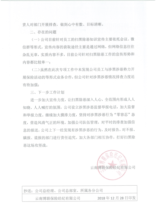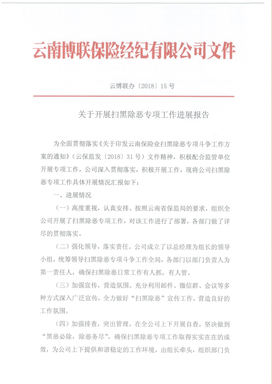 關于開展掃黑除惡專項工作進展報告