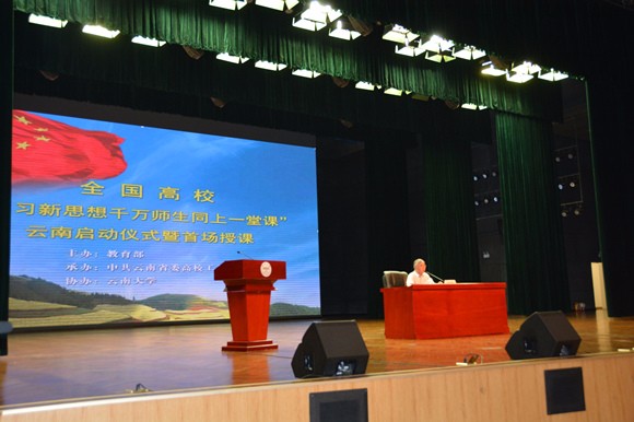 6月6日,全國(guó)高校"學(xué)習(xí)新思想千萬(wàn)師生同上一堂課"云南啟動(dòng)儀式暨首場(chǎng)授課在云南大學(xué)呈貢校區(qū)舉行。教育部督導(dǎo)聯(lián)絡(luò)員丁浩到現(xiàn)場(chǎng)指導(dǎo)工作。云南大學(xué)黨委副書記張昌山教授,中央馬克思主義理論研究和建設(shè)工程首席專家、云南民族大學(xué)教授張建國(guó)分別在啟動(dòng)儀式上授課。